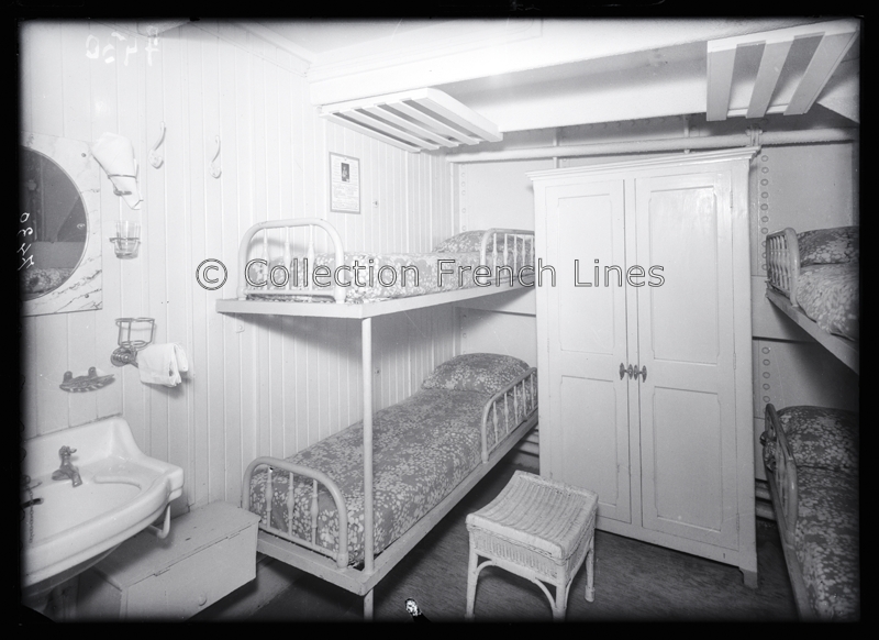 SélectionsCabine classe Touristes du De Grasse (CGT 1924)Auteur ANONYMEPhoto n°FL015789_ibpColorationNoir & BlancCollectionFrench LinesDescriptionCabine extérieure à 4 lits de la classe Touristes (deuxième classe) du paquebot De Grasse (CGT 1924).PreviousNextVous aimerez aussi Ici les suggestions...