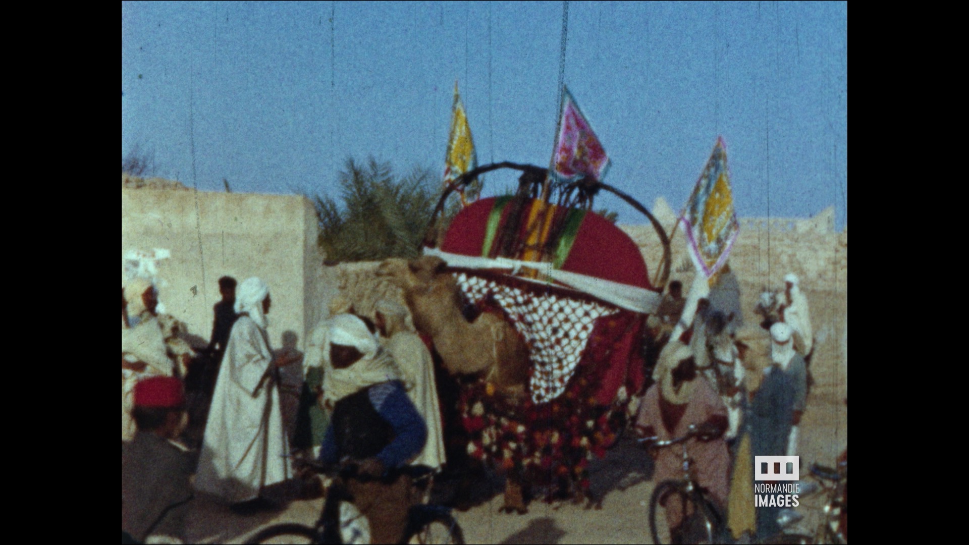 Mariage à Ouargla - fils d'un homme influant (caïd) se mariant - déplacement de la mariée dans un palanquin lors de la "Jahfa" ( symbolisant le déplacement de la femme du foyer de ses parents vers son nouveau foyer).