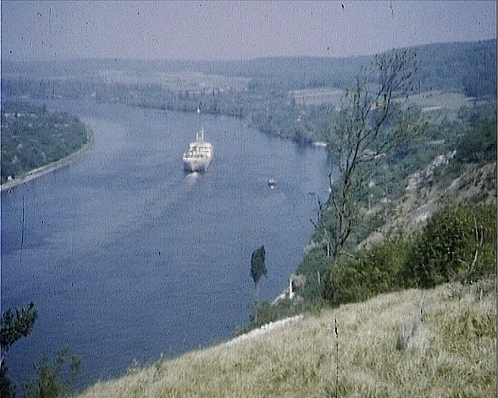 Deux chevaux dans un pré - forêt - vue de la Seine à Villequier- chantier du Trait ? vue depuis un bateau - paysage - péniche - chantier avec deux bateaux en réparation - bateau sur la Seine - Ruine - vue des bords de Seine depuis un bateau - Palais de Justice, avec juges et avocats dans la cour (remise de décoration à M. Le Premier : M. Savannier) - pêcheurs à la ligne - Vue du pont de Tancarville depuis un bateau M. Lanfry à bord.