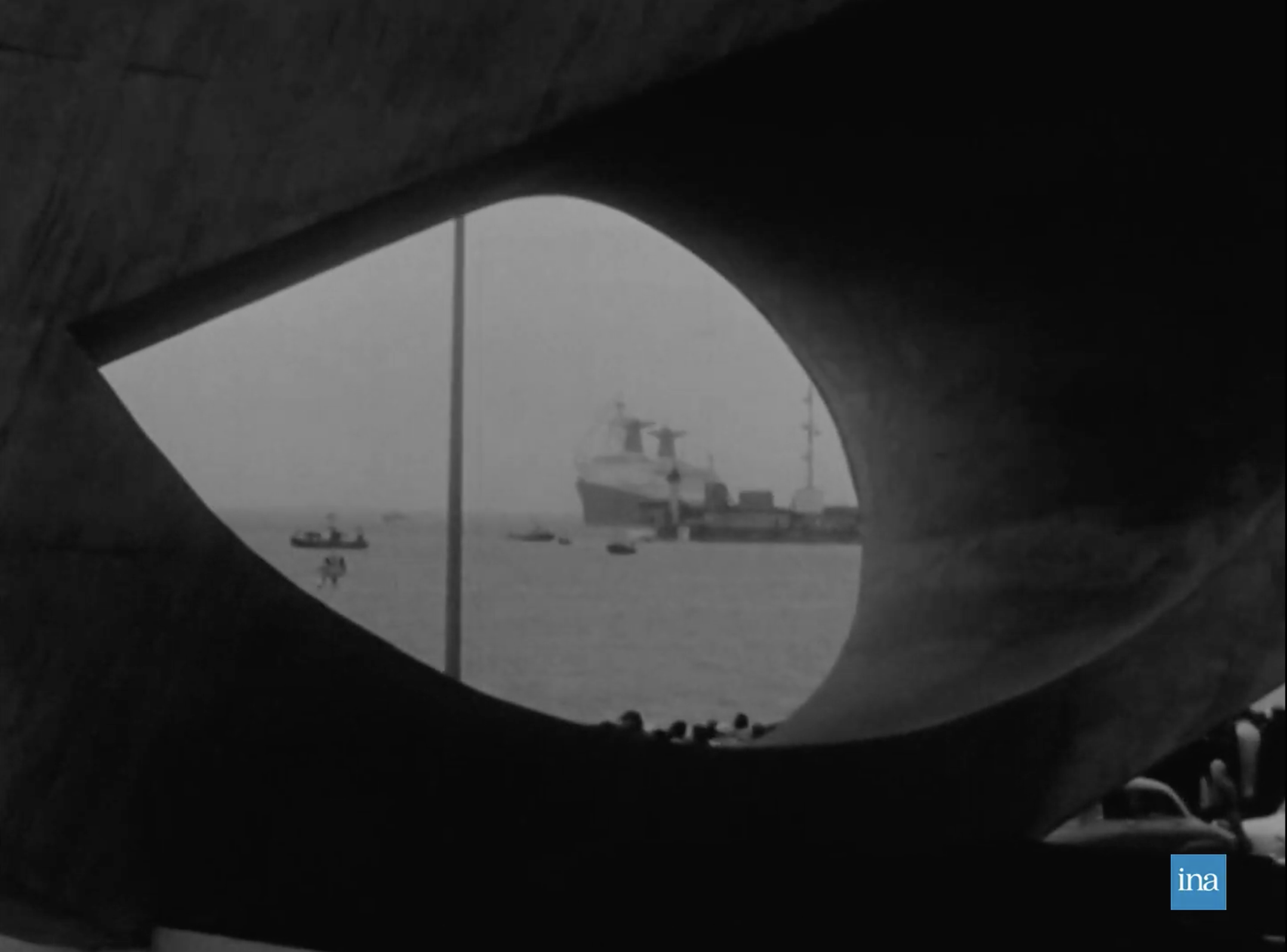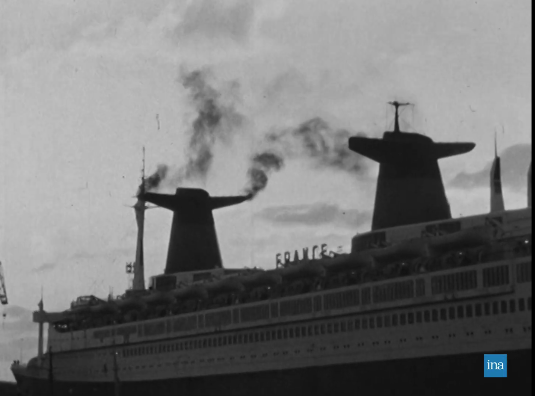 Photogramme issu de Normandie actualités, Les diverses péripéties qui ont marqué le paquebot France depuis son lancement, 24/10/1977, Collection INA (RCF07002384).