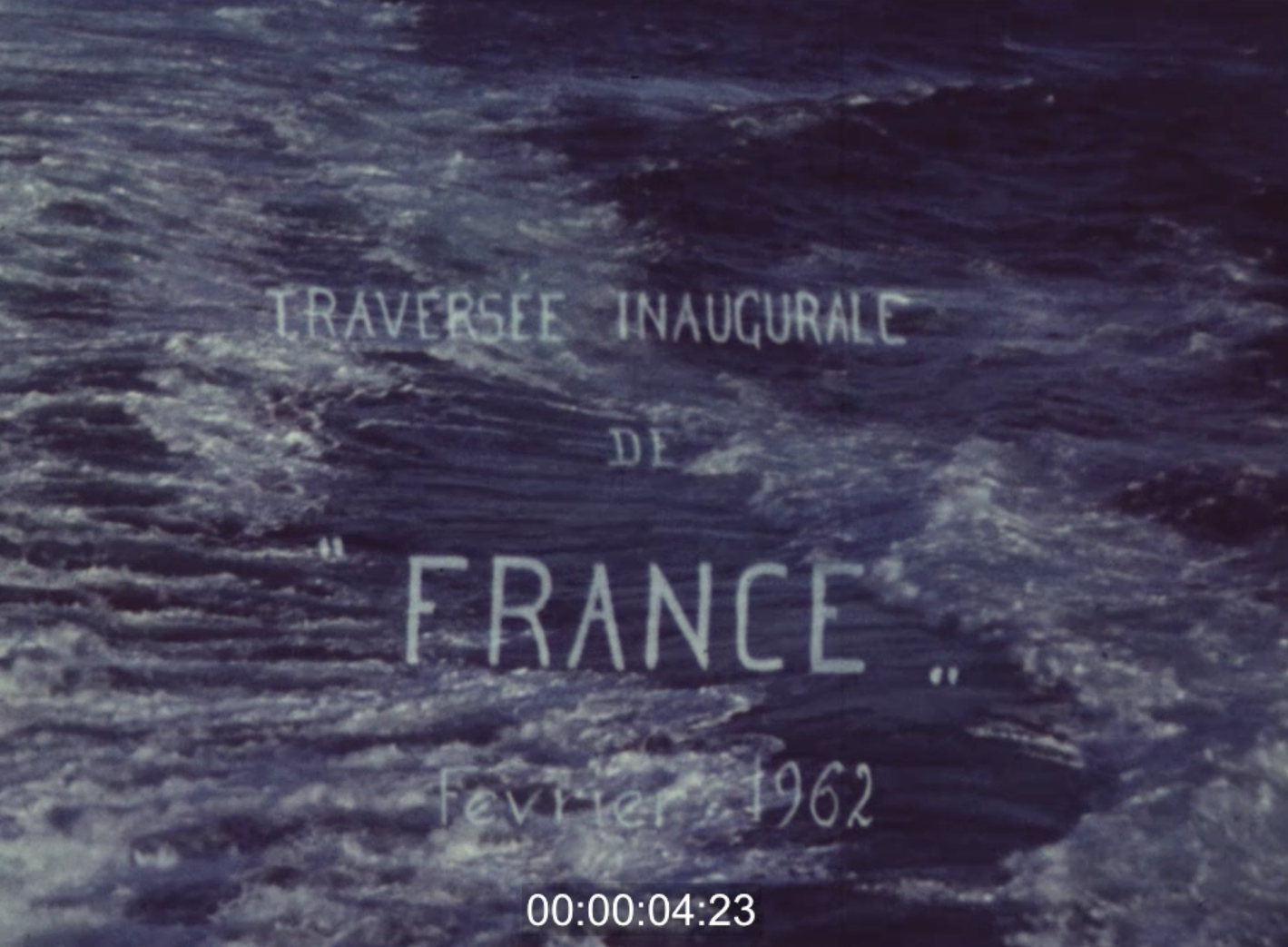 Photogrammes issus de Journal Les Actualités Françaises, Le premier voyage du "France", palace flottant, 10/01/1962, Collection INA (AFE85009360).