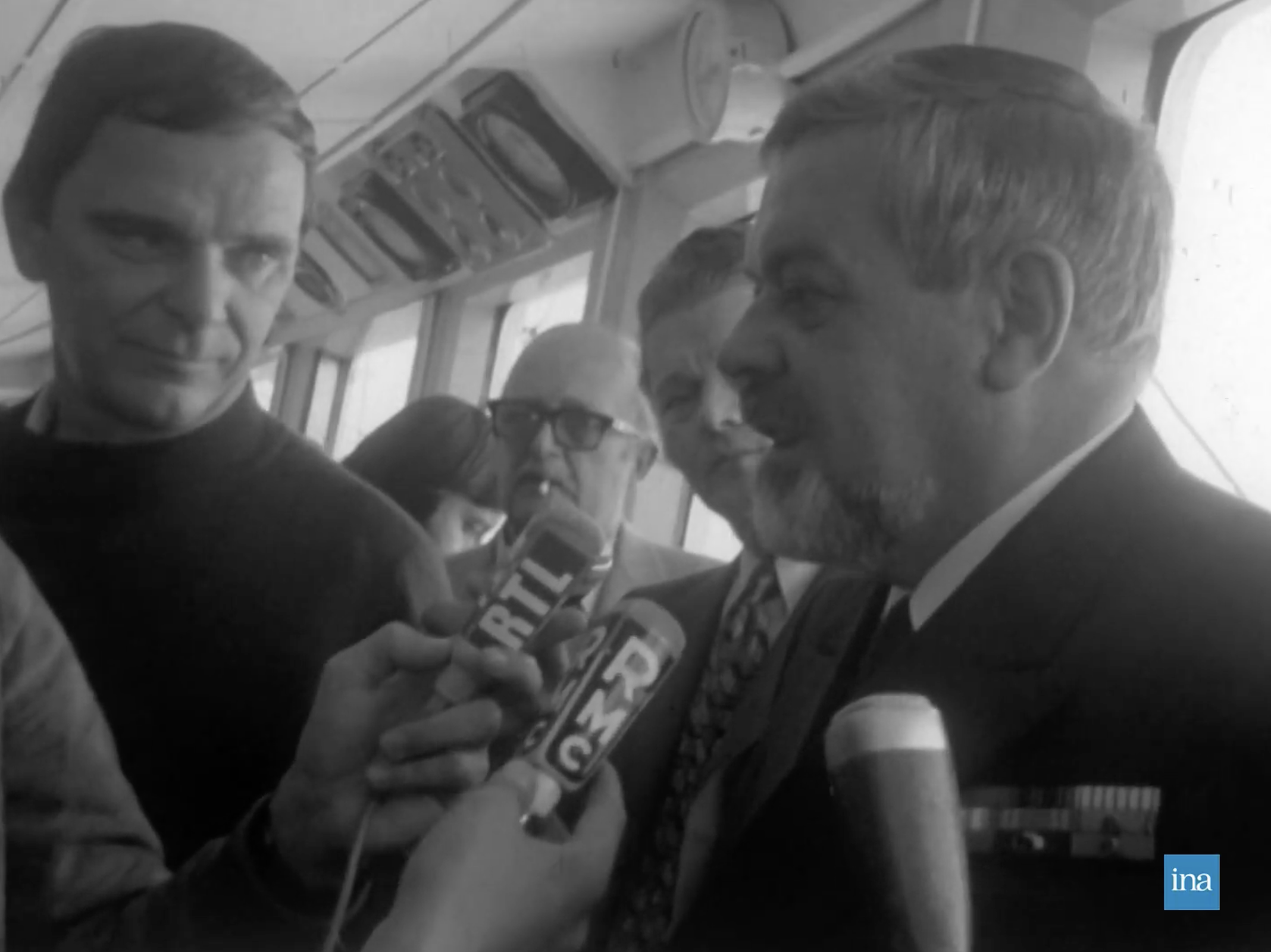Photogramme issu de Normandie actualités, Arrivée du France : réactions et conférence de presse Commandant Christian Pettre, 18/07/1974, Collection INA (RZC9807170876).