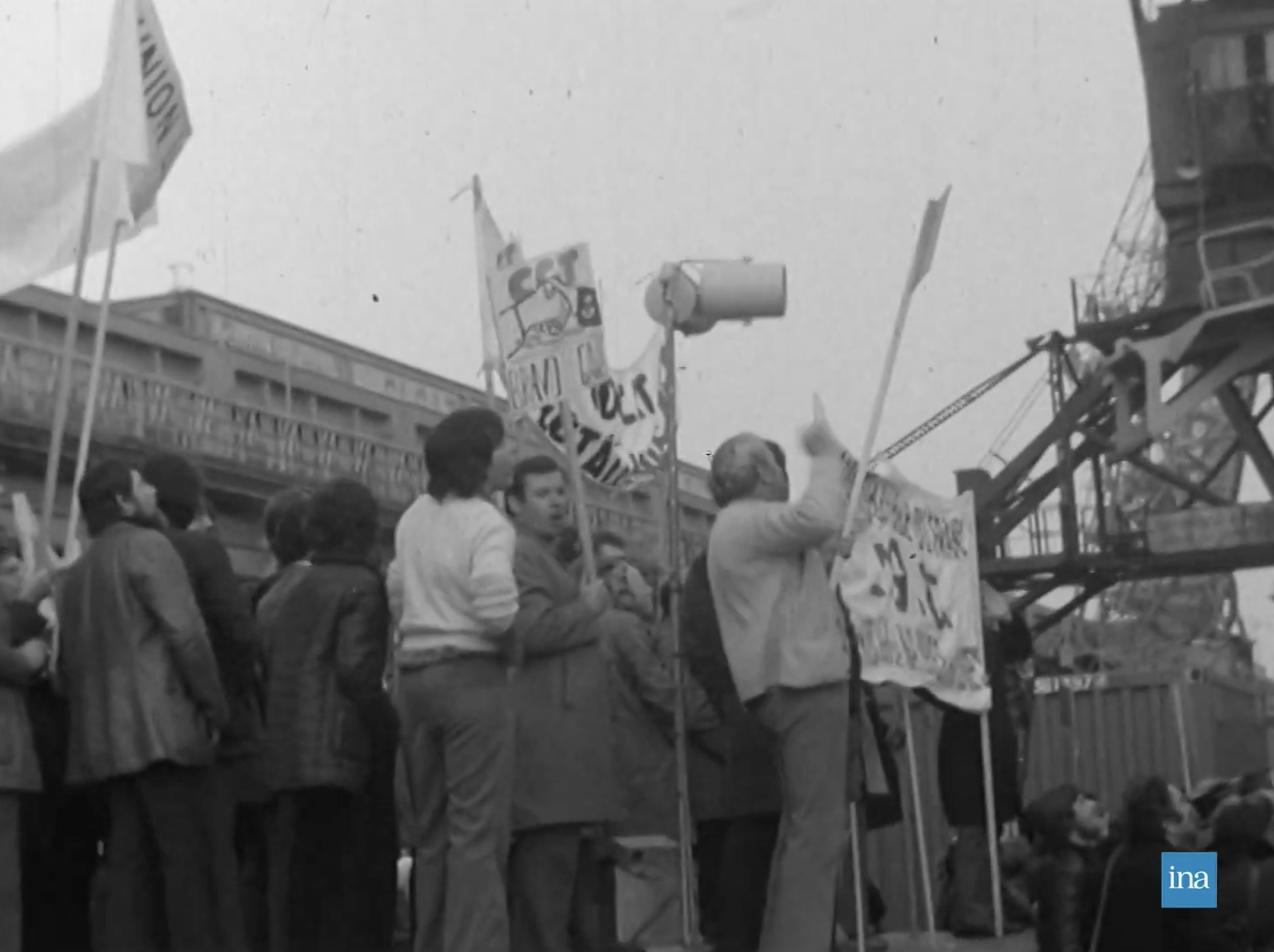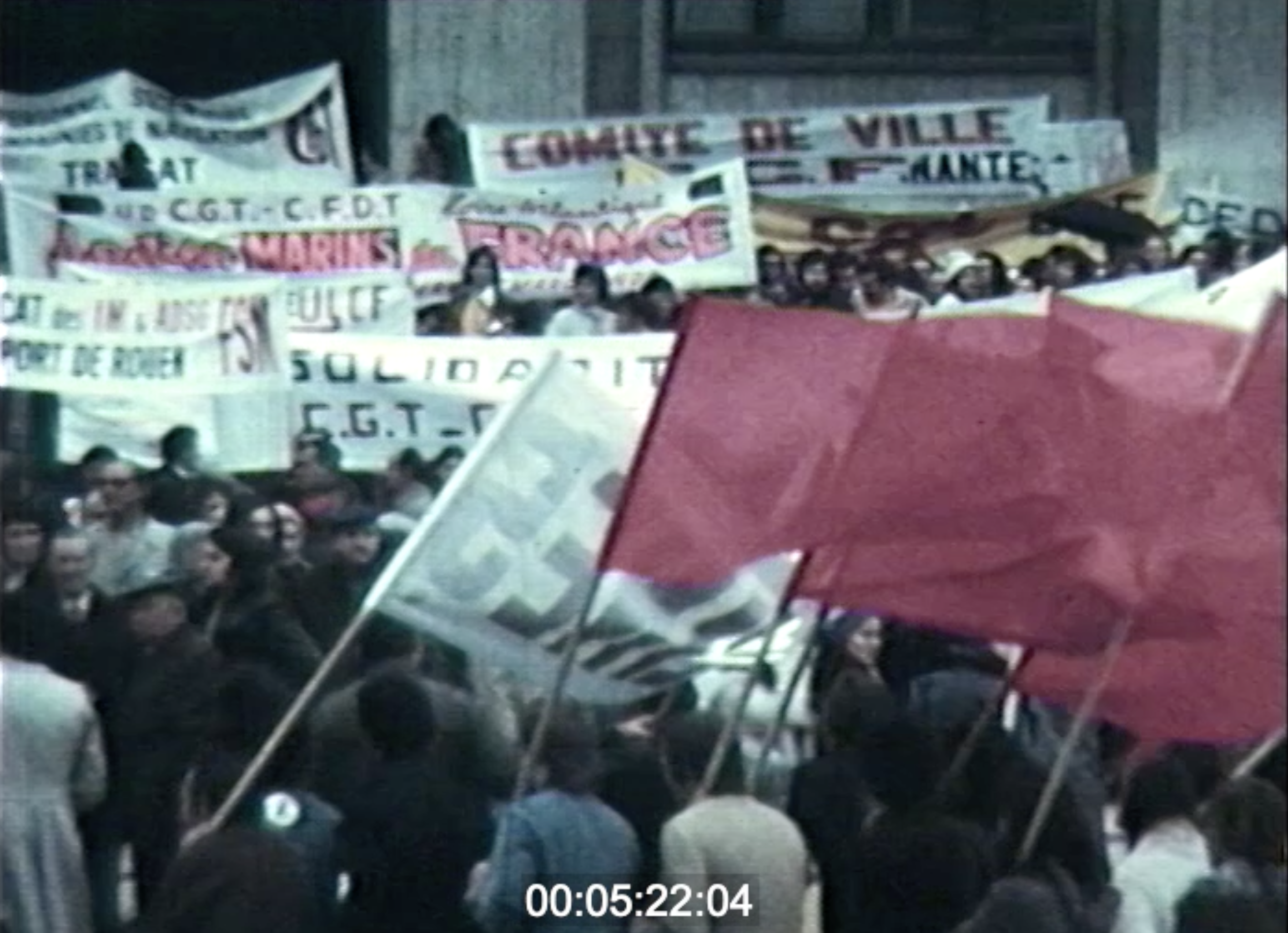 Photogrammes issus de MANIF(S) S/S FRANCE AU HAVRE, 1974, François LE GOUARDER, Collection Normandie Images.