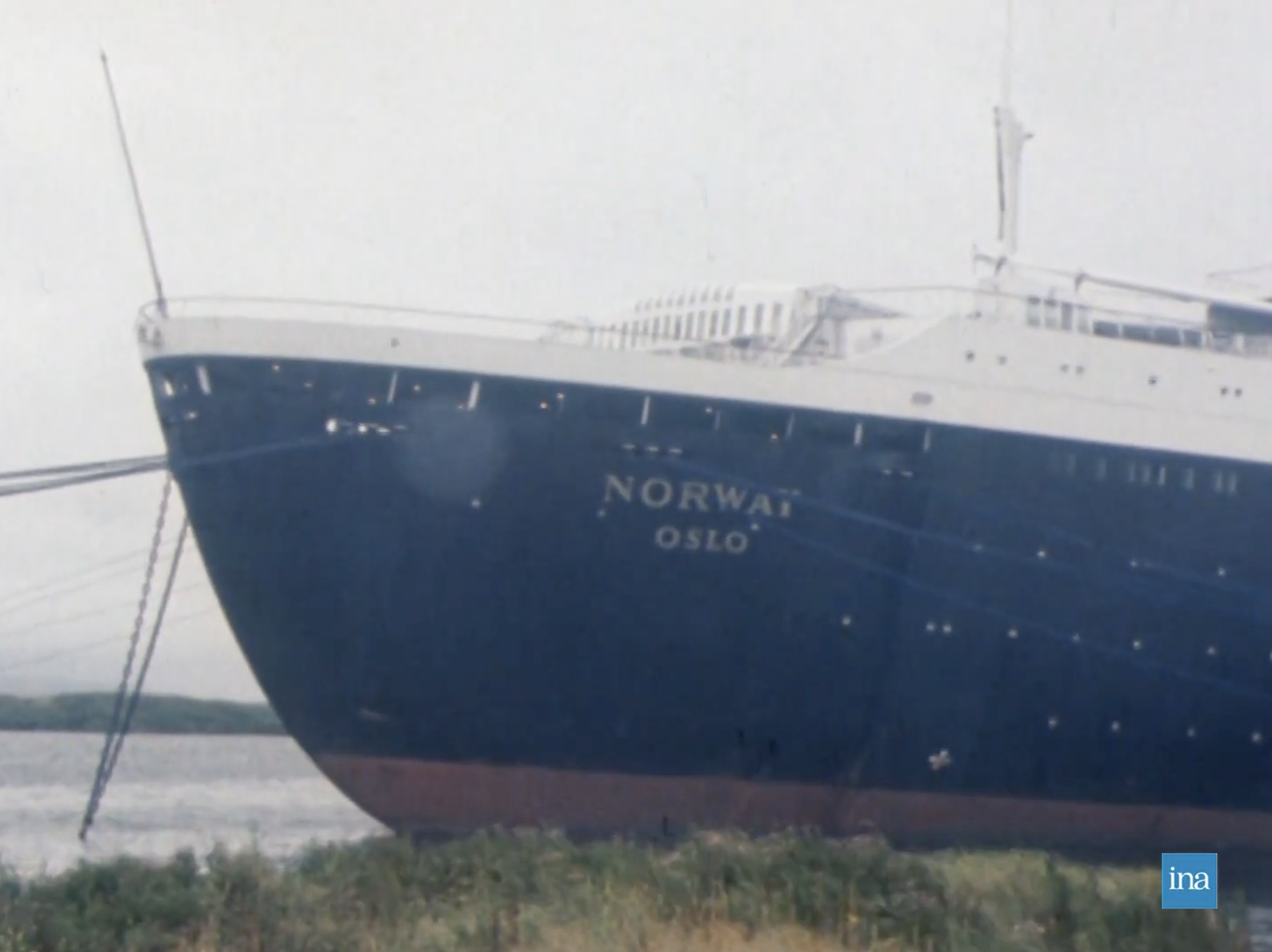 Photogrammes issus de Normandie actualités, Off : le "France" prend officiellement le nom de "Norway”, 01/08/1979, Collection INA (RCC06043035).