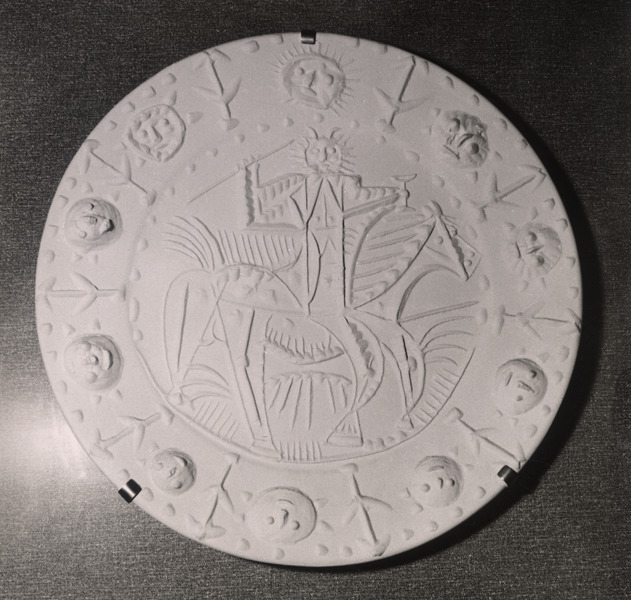 FL007917 Salon, "Cavalier au sablier", plat de Picasso ; FL007918 Salon, "La Danse", plat de Picasso ; FL007919 Salon, "La Danse", plat de Picasso, Collection French Lines & Compagnie.