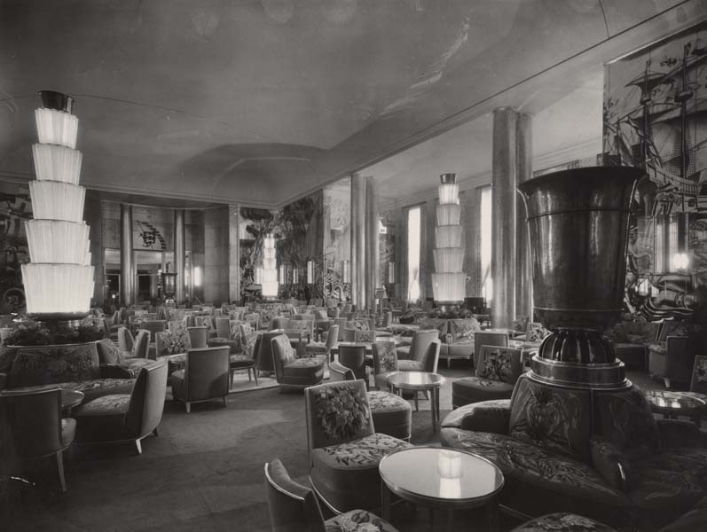 Grand salon de la première classe à bord du paquebot Normandie (CGT 1935), Collection French Lines & Compagnies (FL020974).