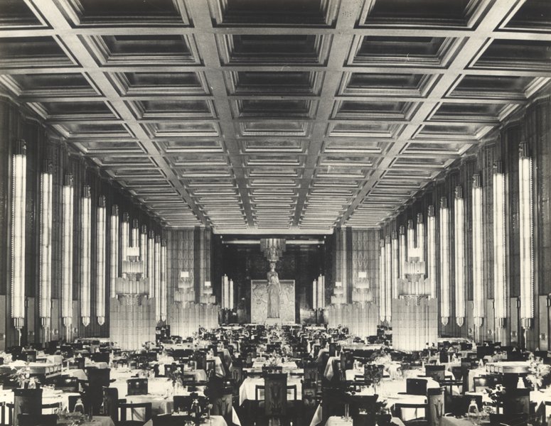 Salle à manger de première classe à bord du Normandie (CGT 1935), Collection French Lines & Compagnies (FL006610).