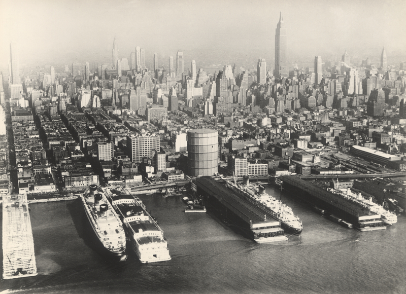 Normandie (à gauche) à quai à New York, Collection French Lines & Compagnies, (FL007280).