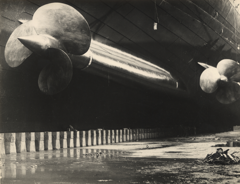 Mais il ne s’agit encore que d’une coque vide : il lui manque ses hélices, ses moteurs, son gouvernail, ses cheminées…