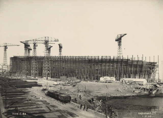 Construction du paquebot Normandie (CGT 1935) le 1er mars 1932, Collection French Lines & Compagnies (FL007371 & FL0013277)